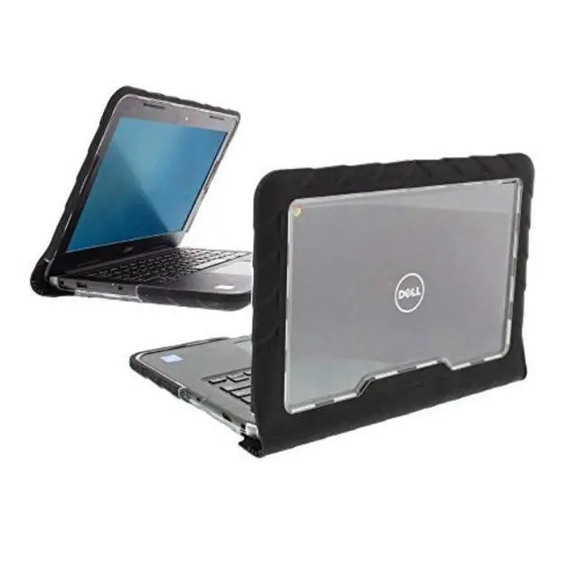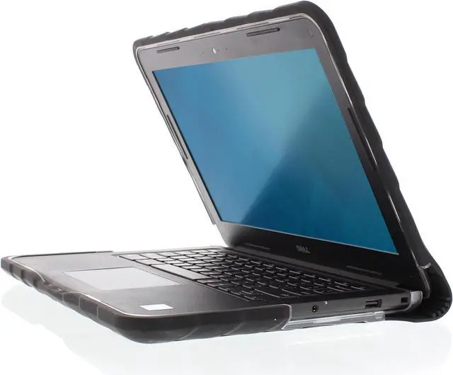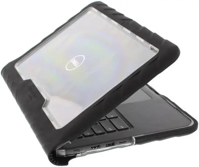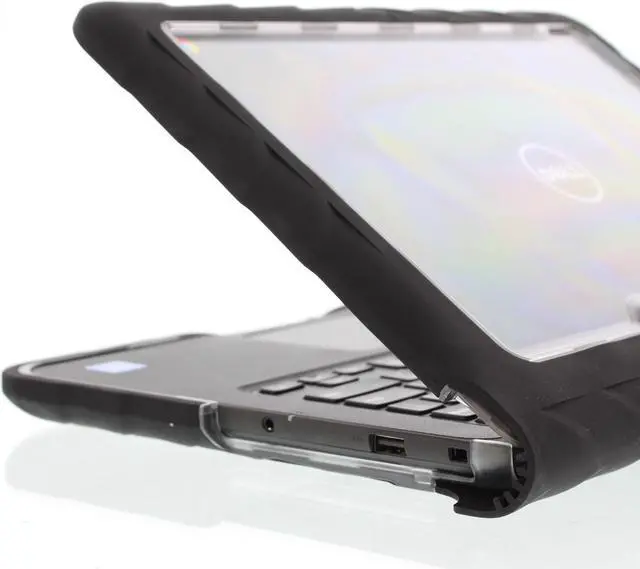 Get best in class protection with Gumdrop's DT-DL3380-BLK DropTech Dell 3380 case! Keep your 13-inch Dell protected with this shock-resistant combination of thick silicone bumper skin and rigid Polycarbonate casing, designed to ensure the camera and all ports remain fully accessible. This unique DropTech case features transparent panels on the top and bottom of the case, allowing you to personalize and identify protected Chromebook and Latitude models by asset tag, school logo, photos and more!