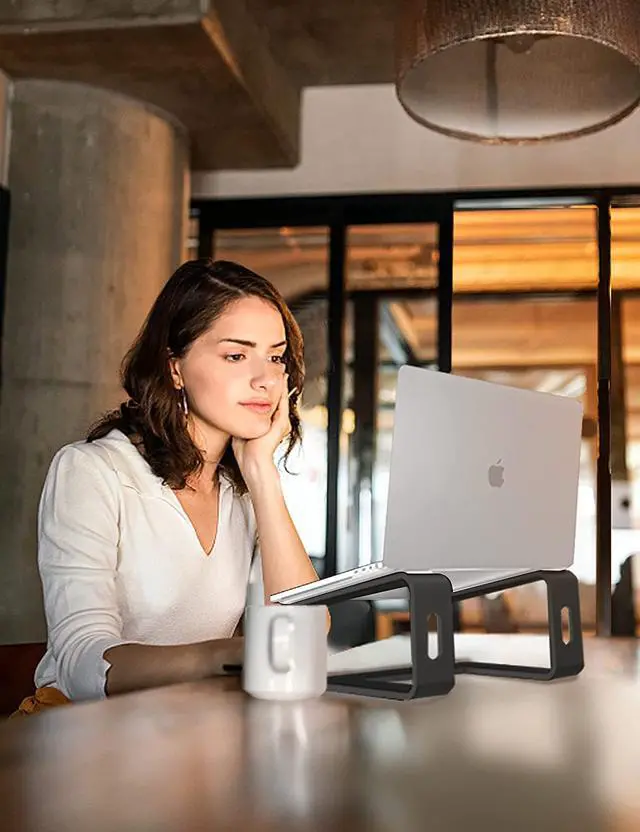 laptop stand tilts the laptop slightly forward, which brings the screen closer for clearer and more comfortable viewing. With the laptop raised and an external keyboard and mouse in place, the sleek stand transforms any desk or table into an optimal, ergonomic workspace for laptop users.