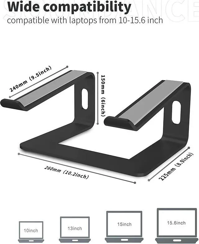 This C08LS Laptop Stand could elevate your laptop by 6 to a perfect viewing level, help you improve your posture th all laptops from 10''-15.6'', such as Aand reduce neck and shoulder pain.