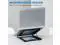 Create an ergonomic setup wherever you go with this portable laptop stand. 5 adjustable height settings offer maximum flexibility and the open design contributes to both a modern look and effective ventilation. Sturdy steel construction holds devices weighing up to 11 lbs. Attached non-slip pads prevent the stand and your device from moving. Fold it down for easy travel. Its compact size fits perfectly in a laptop bag or backpack.