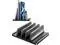 You can use it to adjust space between the middle holders (from 0.59 inches to 1.57 inches). So you can customize the width of each slot to match the thickness of any device. Holding laptops with space between can also ensure good air circulation. Solid And SturdyFeatured by ergonomic principle and held up to rigorous stability testing the vertical tablet stand can hold your laptops secure and sturdy. Added with non-slip rubber lining at the bottom of each slot it can prevent your laptop from scratches. You dont need to worry about the risk of damaging or falling of your laptop.