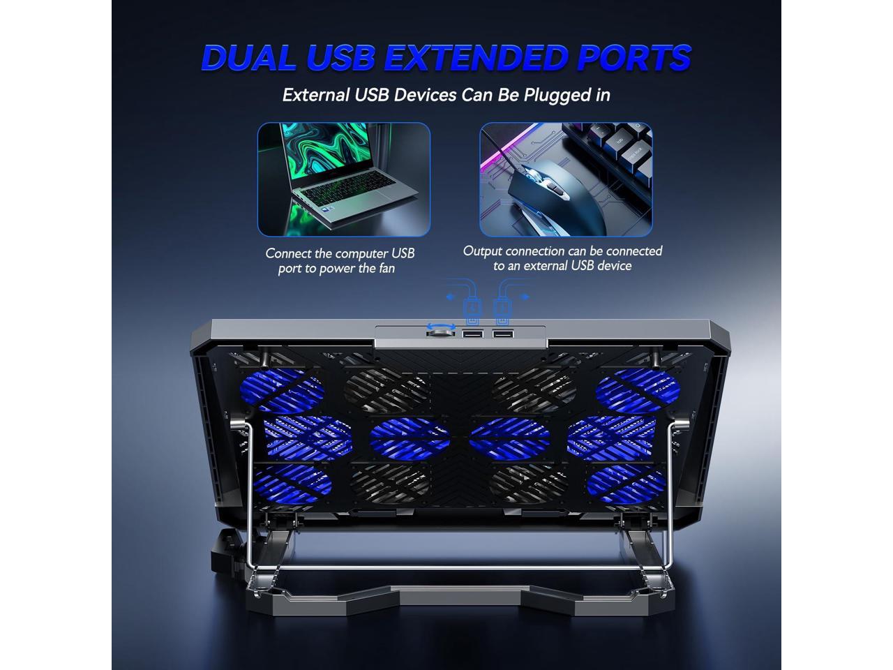 - Dual USB Ports- The laptop fan cooling pad is designed with dual USB ports, providing additional charging or connection options for accessories like a mouse, keyboard and etc.