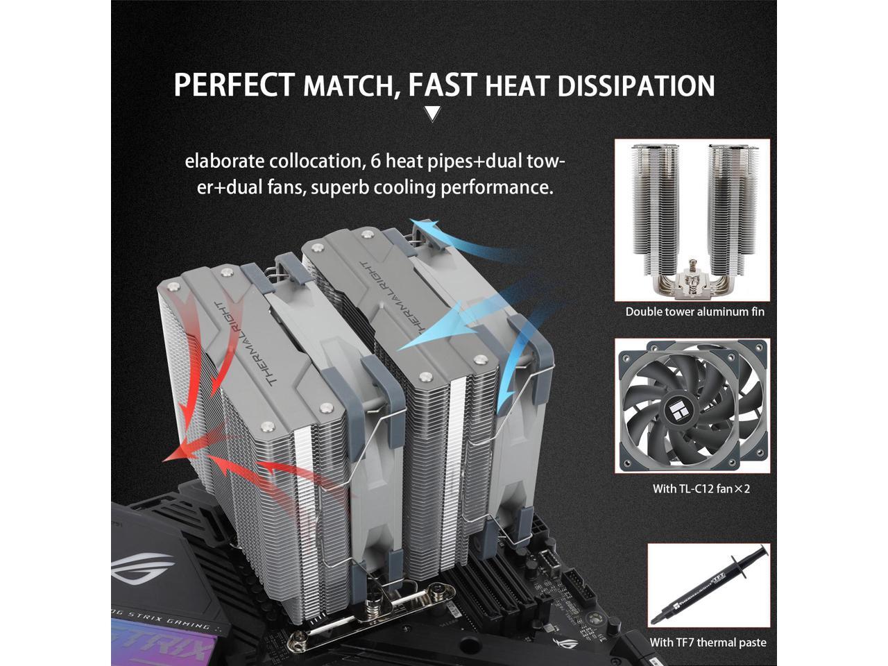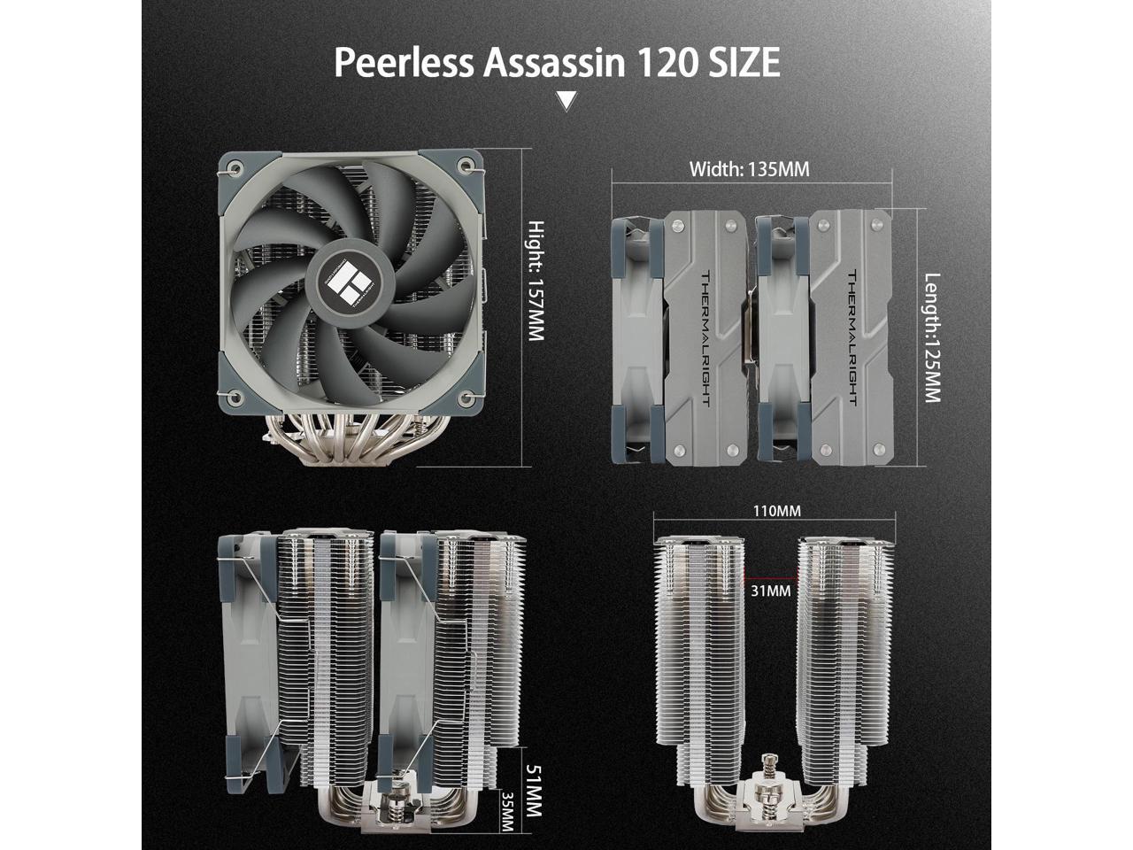 Thermalright Peerless Assassin 120 CPU Air Cooler, 6 Heat Pipes, Dual 120mm TL-C12 PWM Fan, Aluminium Heatsink Cover, AGHP Technology, for AMD AM4 AM5/Intel LGA 1700/1150/1151/1200/2011/2066 (PA120)