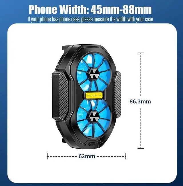 - [Universal Compatibility]Our phone cooling fan is designed to be compatible with all type smartphone from 4.5 to 7 inches( Width from 45mm to 88mm). To use, simply clamp it to the back of your device and you are ready to immerse yourself in long gaming sessions.