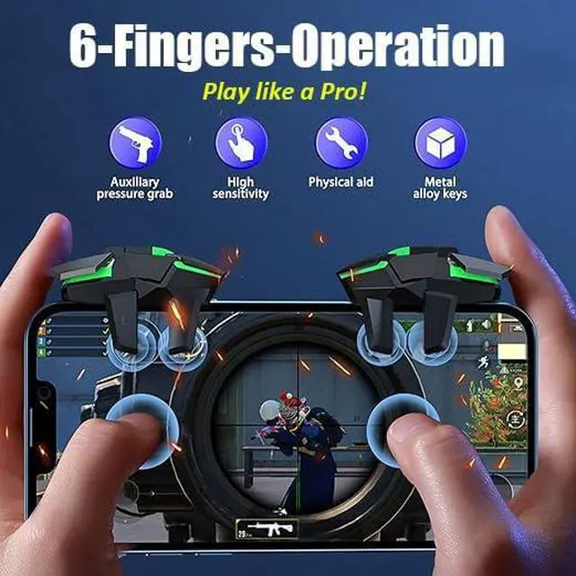 - [Perfect Compatibility]These L2R2 Mobile Game controllers are compatible with iPhone, iPad and most Android Phones, without even remove your case.(The thickness of the compatible mobile phone should be less than 13mm.) These 6-fingers-operation mobile game controllers are suitable for a variety of shooting games, including PUBG, Call of Duty, Fortnite, Knives Out, Rules of Survival, Survivor Royale, Critical Ops etc. As long as the game allows customizing and draging the keys.