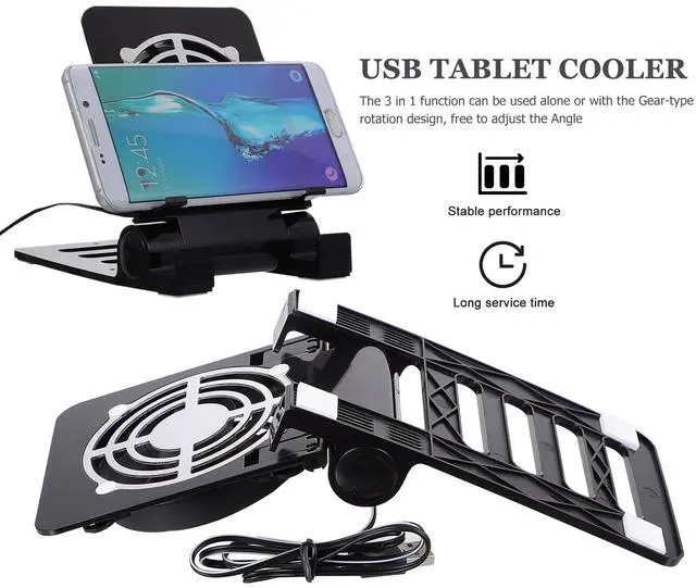 The 3 in 1 function can be used alone or with the Gear-type rotation design, to adjust the Angle. The USB phone cooler is super quiet during normal operation without making annoying noise.