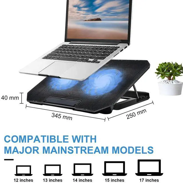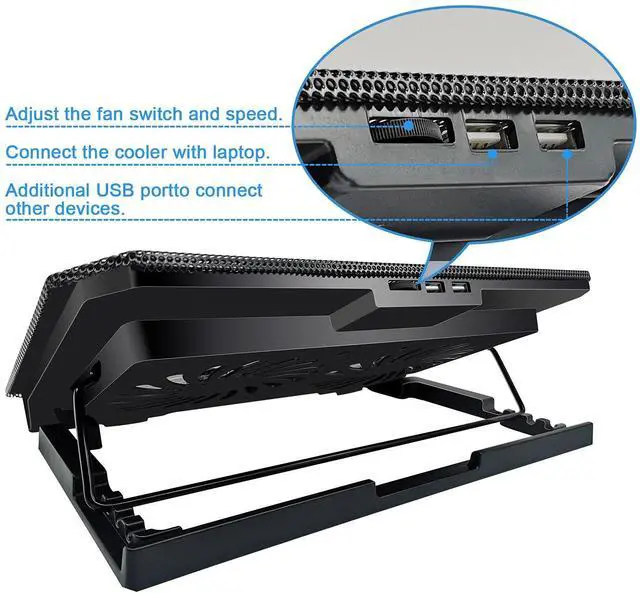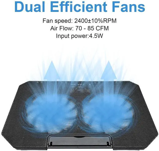 Cooling pad for laptop 17 inch,2 USB powered, with power switch design is so simple to use. 1 extra USB port for an additional USB device