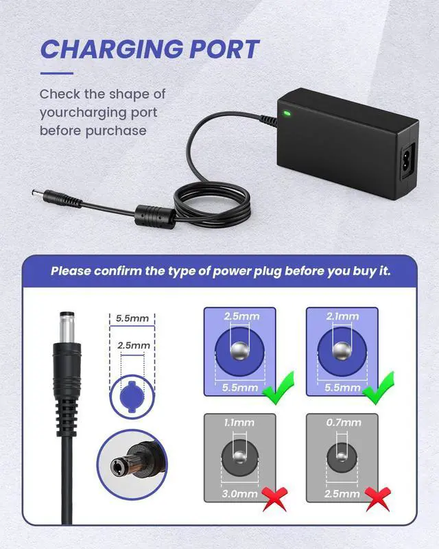 | DC Plug size | 5.5mm x 2.5mm (Compatible 5.5mm x 2.1mm DC Port) |