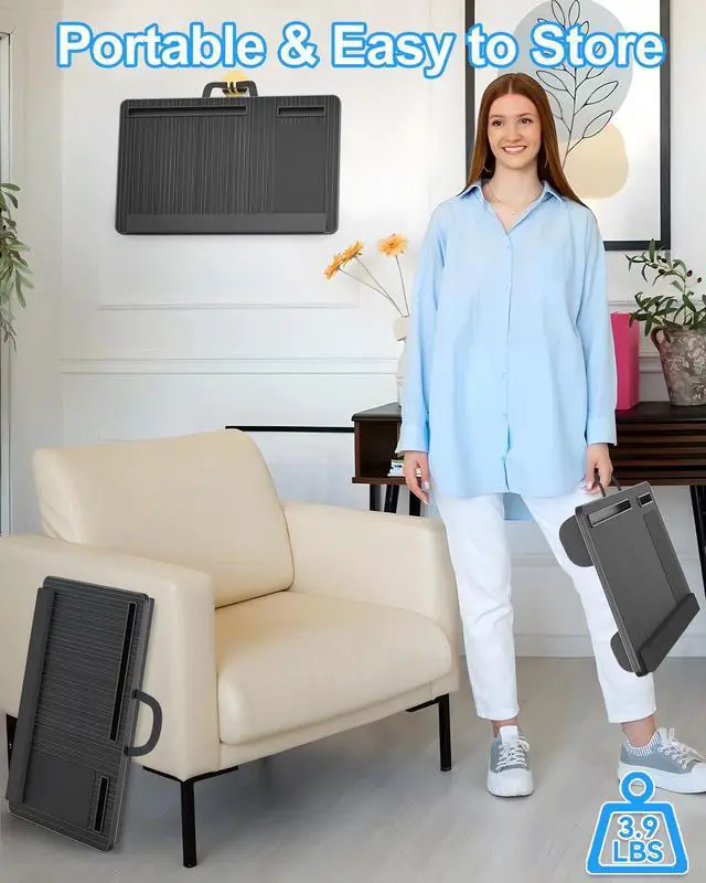 This laptop lap desk with cushion comes with a portable handle that not only allows you to work at home, in the office, but also to take and use it with you when traveling. A great choice for gifts for family and friends!