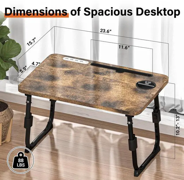 - [ ]: Spacious 23.6"x 15.7" desktop can hold laptops up to 17", and watching movies, reading, and eating all can be done in bed. Whether you use it on the floor, couch, or a cushion, you'll have a comfortable experience. Portable laptop desk can be used as a small picnic table when camping. You can send laptop bed as a creative gift to your friends and family.