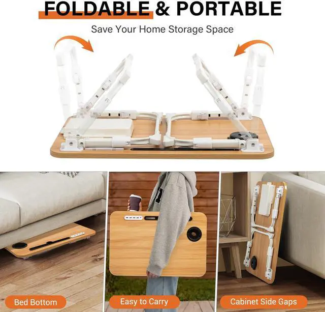 DECOSIS Bed Desk Height Adjustable Wood Color