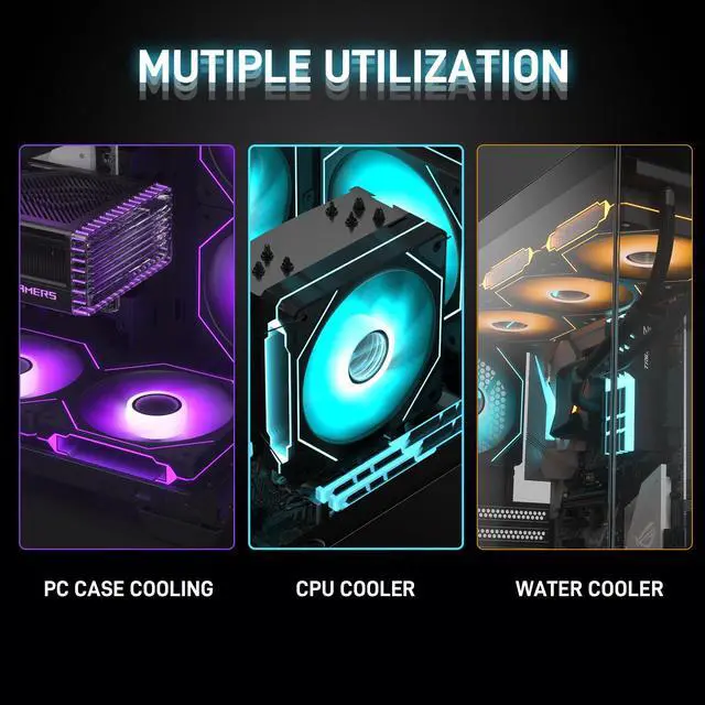 ARGB lighting on fan blades and frame, creating stunning lighting effect for the PC chassis
