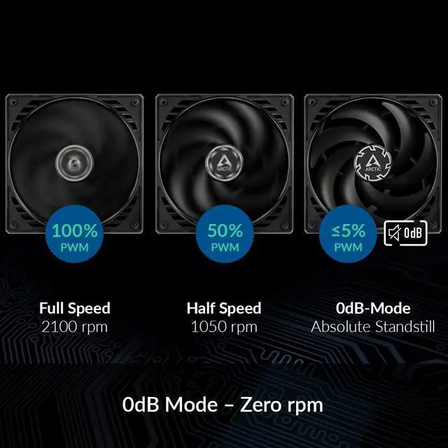 Fan Speed: 300–2100 rpm PWM Controlled (0 rpm below 5% PWM)