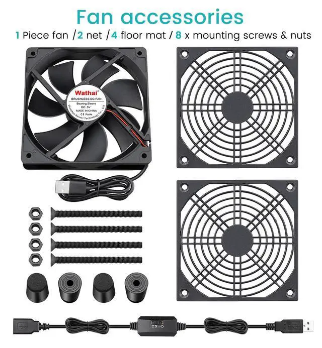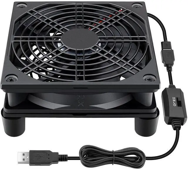 - The cabinet fan regulated electronic components' temperature, including the AV receiver. The small usb fan provided additional cooling, while the exhaust fan expelled hot air. The 120mm slim fan fit tight spaces.