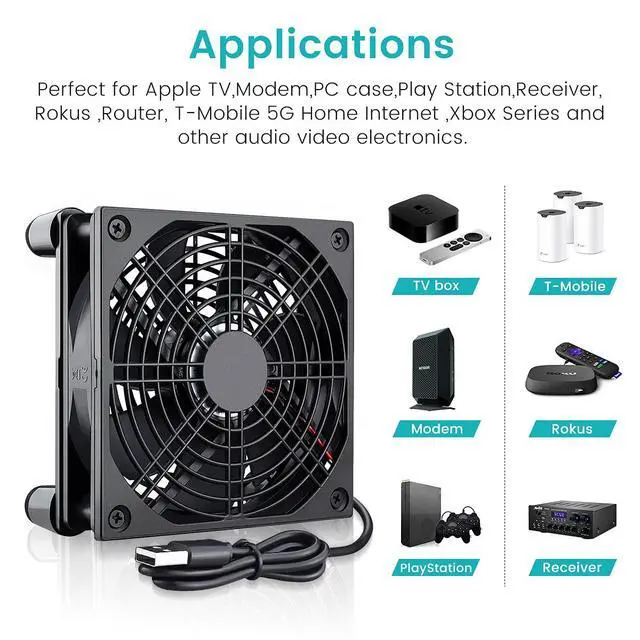 - Good for cool various electronics and components, like TV box, receiver, dvr, router, modem, xbox series x cooling fan, xbox series x accessories, playstation, microcomputer, survelllance recorder, netgear and other audio video electronics.