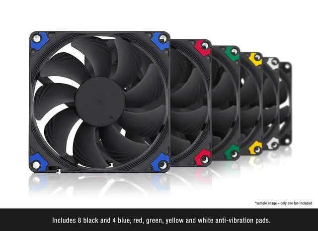 The NF-A9x14 PWM chromax.black.swap comes with 8 swappable, self-adhesive anti-vibration pads in black, white, red, blue, green and yellow respectively, which allow the fan to be fully colour-customised in order to coordinate it with other components or popular build schemes.