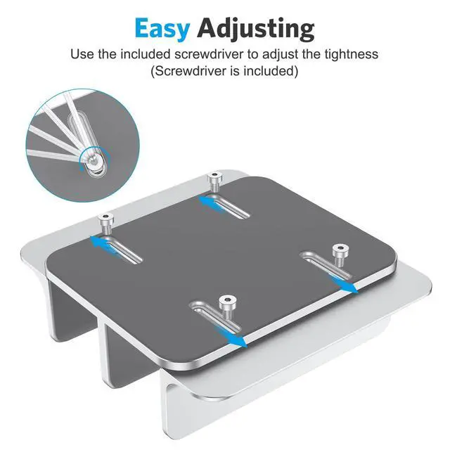 ![Alt view image 4 of 7 - Vertical Laptop Stand [Updated Double Version], Desktop Aluminum Mac Book Stand with Adjustable Dock Size, Fits All Mac Book, Surface, Chrome Book and Gaming Laptops (Up to 17.3 inch) (Silver)](https://c1.neweggimages.com/productimage/nb640/C5JMD26030607EJEO5C.jpg)