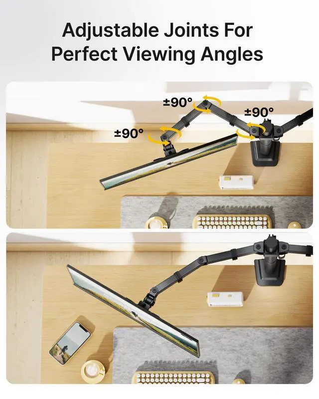 Smooth Arm Movement: Fully adjustable arms extend, retract, and rotate to position your monitors exactly where you need them, whether side by side or stacked for a more ergonomic setup.