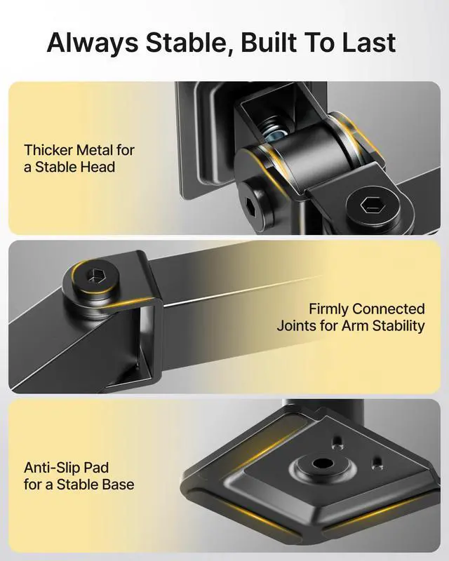 Sturdy & Reliable Build: Heavy-duty steel construction with reinforced joints, anti-slip base pads, and thickened head plates ensures long-lasting stability and wobble-free monitor support.
