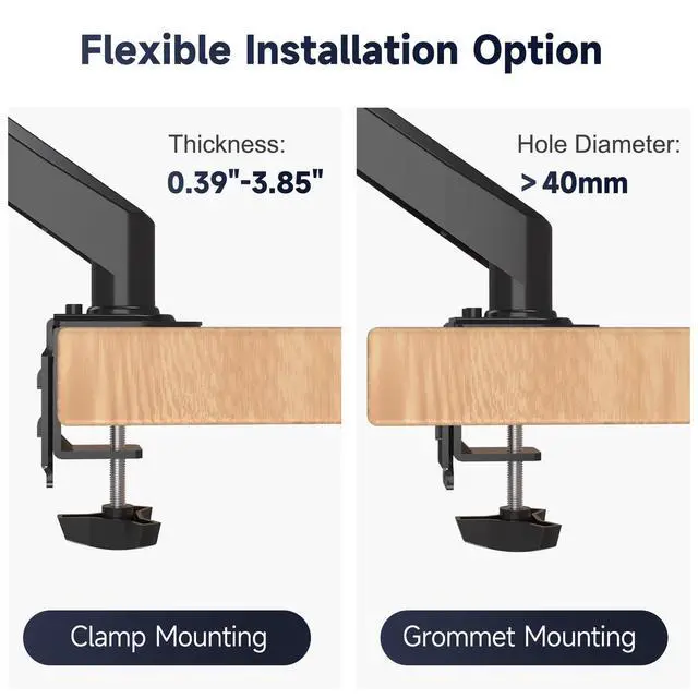 Two Install Options - C-clamp and optional grommet base save your valuable desk space.Step-by-step user manual and organized hardware kit for hassle free mounting.If you have any problems during the installation process or product selection,you can contact our customer service team in a timely manner.