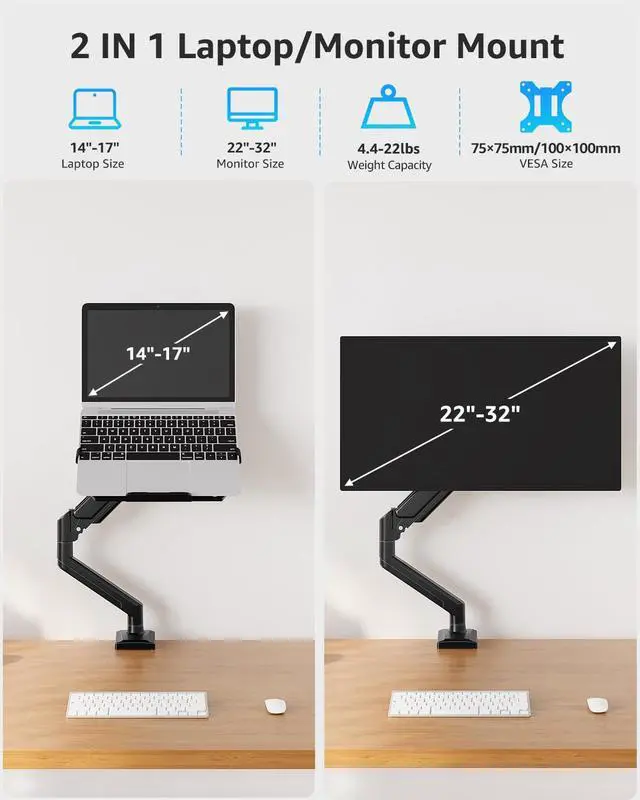 Important Note: The monitor arm is pre-set to medium tension(Not applicable to all displays). You will need to refer to the figure above and adjust the tension according to the weight of your monitor once the monitor is hung on.