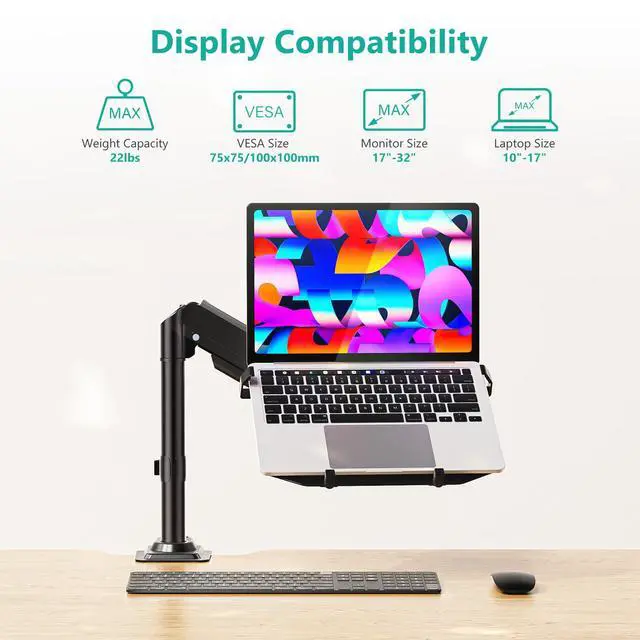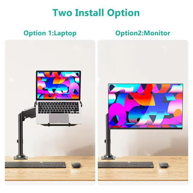You can adjust this monitor desk mount with gas spring arms to your desired position at any time. Raise your laptop to eye level to improve work efficiency.
