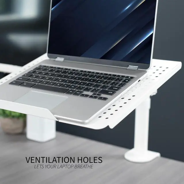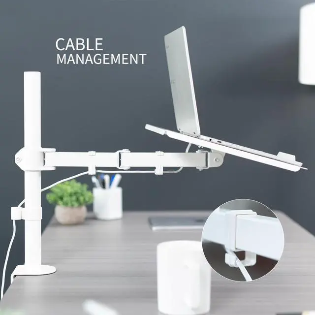 Single Laptop Notebook Desk Mount Stand, Fully Adjustable Extension with C-clamp, Fits up to 17 inch Laptops, White, STAND-V001LW