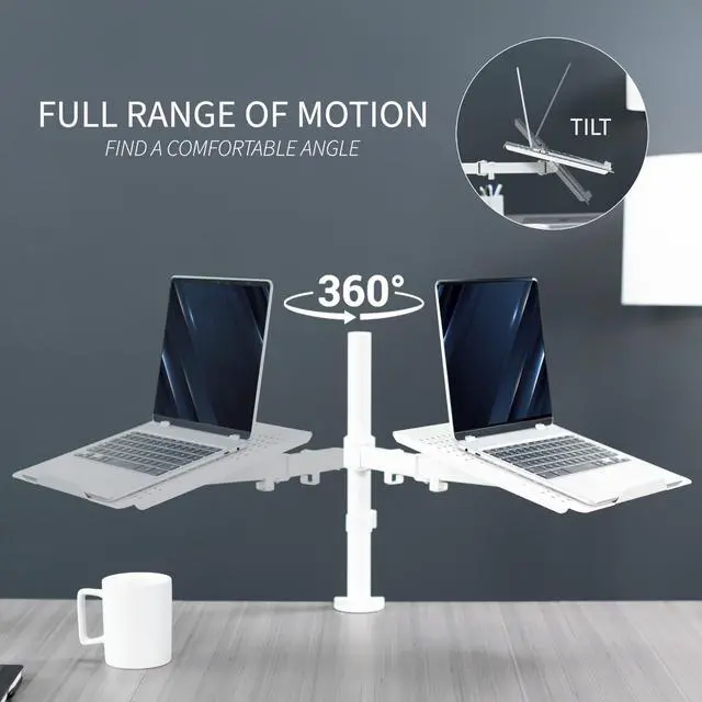 Elevate your work to a more comfortable and ergonomic position with this stand's long arms and fluid articulation. High-grade steel and aluminum construction along with the heavy-duty C-clamp or optional grommet ensure your laptop will be kept secure. The mount can be converted to a monitor stand with VESA compatible screens and supports the majority of laptops and monitors on the market.