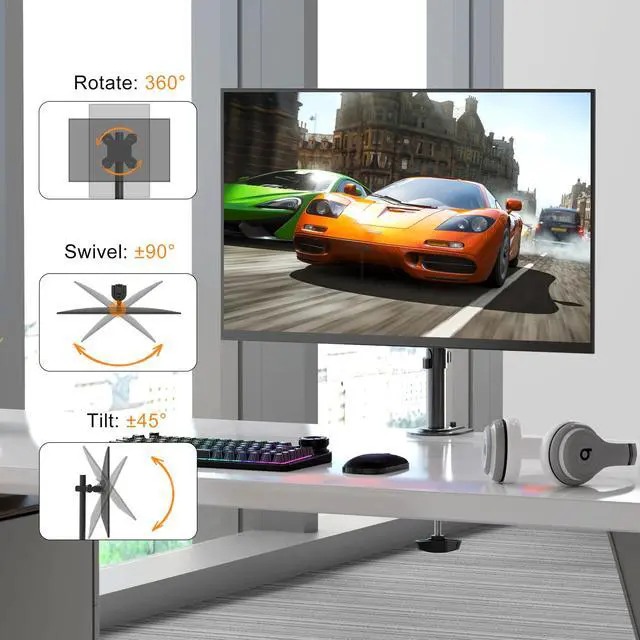 Angle Adjustable & Height Adjustment: This dual monitor stand can tilt 90° up and down, swivel 90° right and left, 360° rotation, you can choose the angle that you want, which can give you a good viewing. The monitor arm can adjust height that is very flexible.