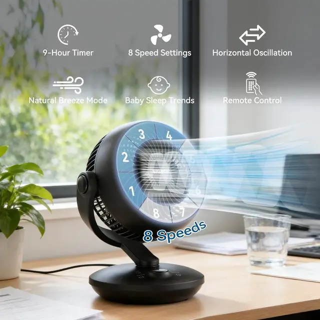 Perfect Bedside & Office Fan: Designed for your most restful night as the desk fans for bedroom comfort. Choose from 8 precise speeds and 3 Smart Modes (Normal, Sleep, Ultra-Quiet Baby Wind) to customize gentle airflow. Ensure youre never disturbed by noise while resting or working. The memory function recalls your perfect settings instantly. Ideal as a desk fan, office fan, or tabletop fan.