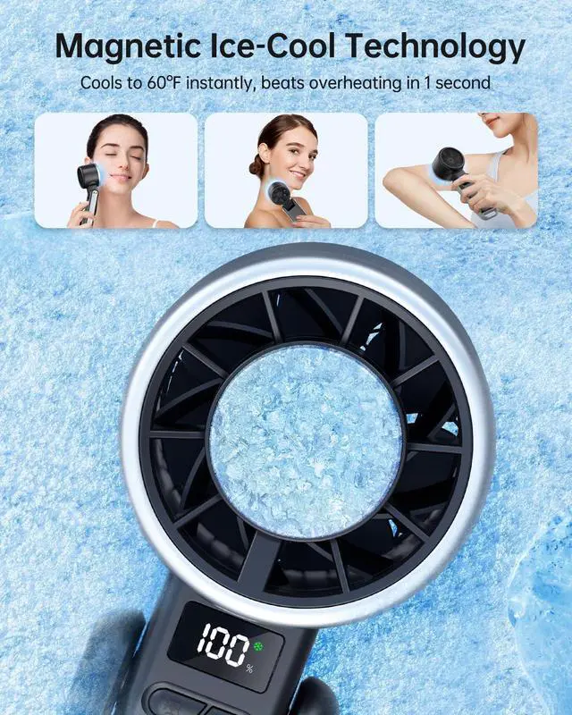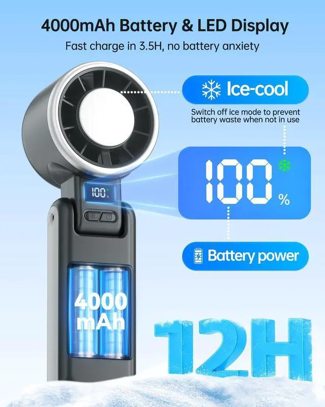 One-Touch Ice Cooling Magic: Activate the ice cooling pad to feel immediate chilldropping to 60°F in seconds! This handheld fan is perfect for instant relief on cheek, neck, back, or forehead when the heat overwhelming. Exclusive innovation for faster, deeper refreshment.