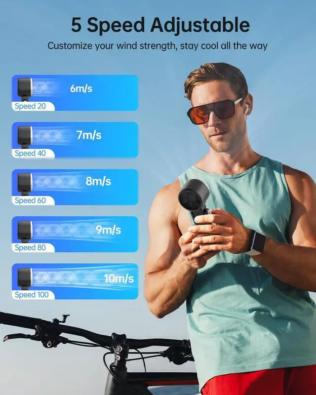 Powerful Cooling with Turbocharged Airflow: Powered by a high-speed brushless motor, the N612 portable fan delivers powerful breeze to cool you down instantly. The max speed of 10m/s will quickly beat summber heat whether your are outdoors or on the move.