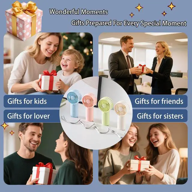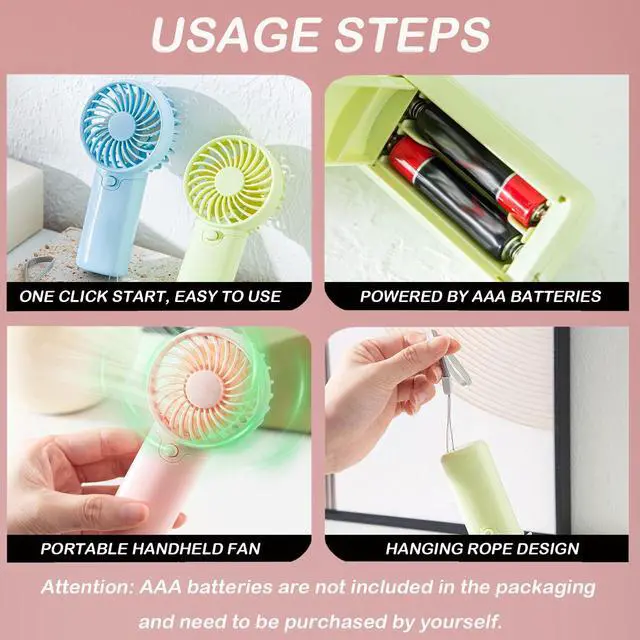 Four different colored mini fans that you can use every day or give to your children, friends, or colleagues.