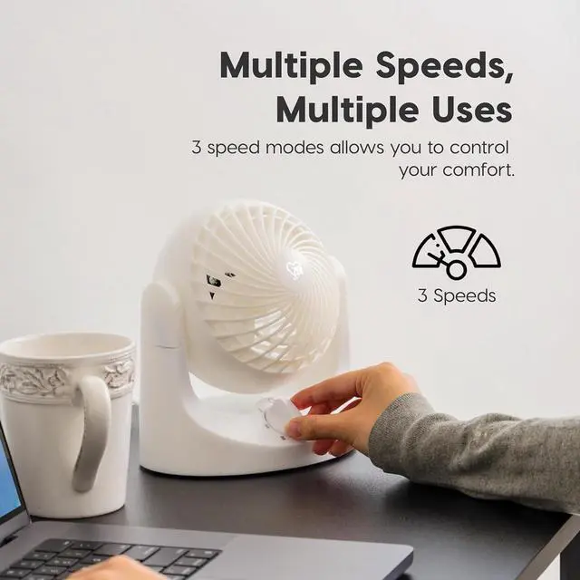 3 SPEED LEVELS - Adjust the speed to suit your mood and needs, from just enough to cool off to powerful enough to reach every corner of the room. All it takes is the turn of a knob to the desired setting.