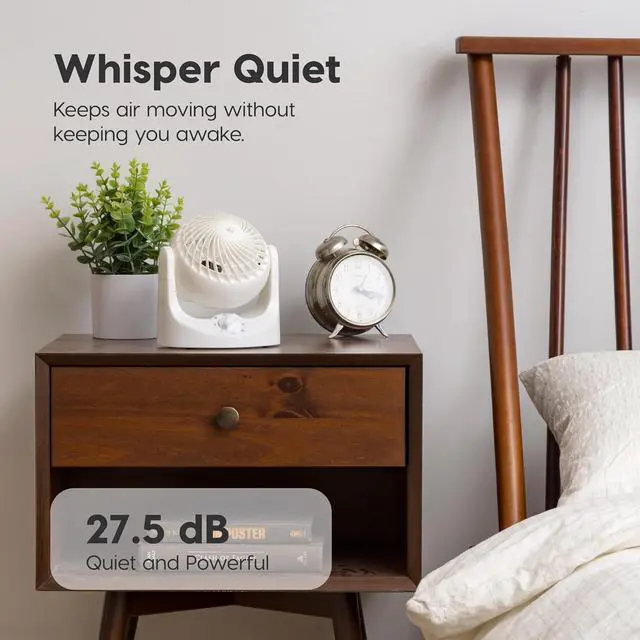 QUIET - Emitting only 27.5 dB of noise, this WOOZOO table fan is perfect for when you need a breeze while trying to sleep or study, or just want to be cool and relax without any loud noises or distractions.