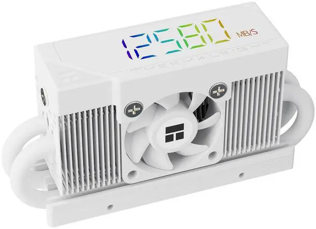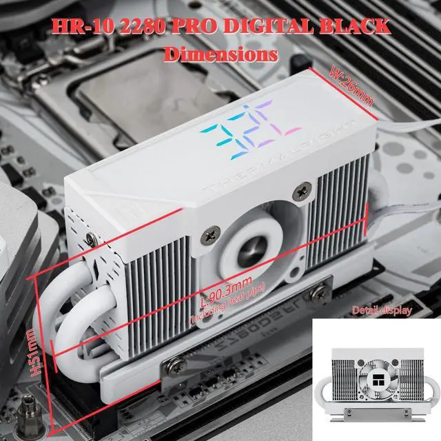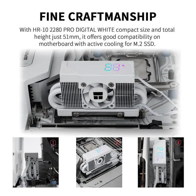HR10 2280 PRO Digital White-High-Performance Solid-State Hard Disk Radiator Equipped with 4x5mm AGHP Heat Pipe, ARGB Digital Display, Small Fan Cooling, SSD Heatsink Cooling