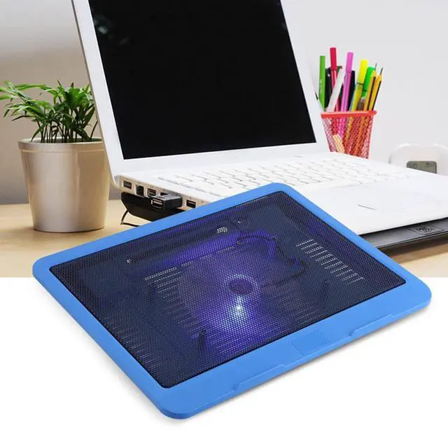 - BETTER DESIGN - laptop cooling mat built-in big fan (diameter130 x 20mm) with blue LEDs. laptop stand with fan strong, durable but lightweight construction with metal mesh front