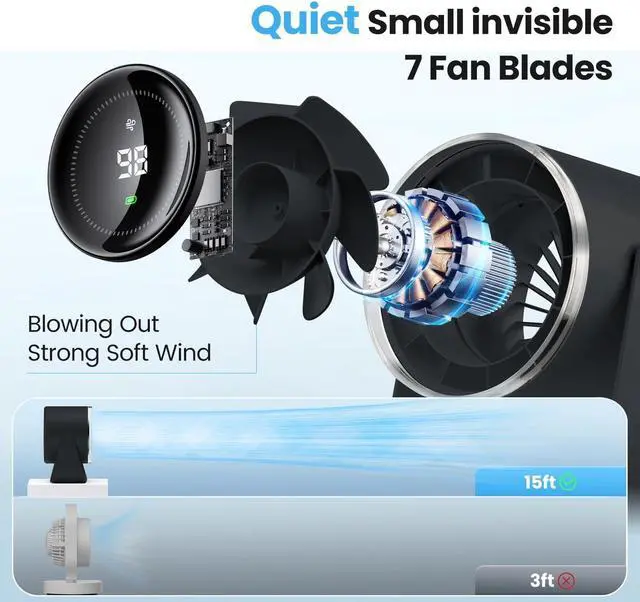 Ultra Quiet Small Desk Fan: This small desk fan features 7 diagonal flow fan blades, delivering a gentle, soothing breeze for a calm and comfortable experience. Its innovative invisible blade design ensures safety, preventing contact by infants, children, or pets. With upgraded aerodynamic technology, it operates at a whisper-quiet 28dB, even at higher speeds, making it perfect for peaceful sleep or quiet spaces. Ideal for bedrooms, offices, desks, or dorms, this fan offers reliable, safe, and quiet cooling.