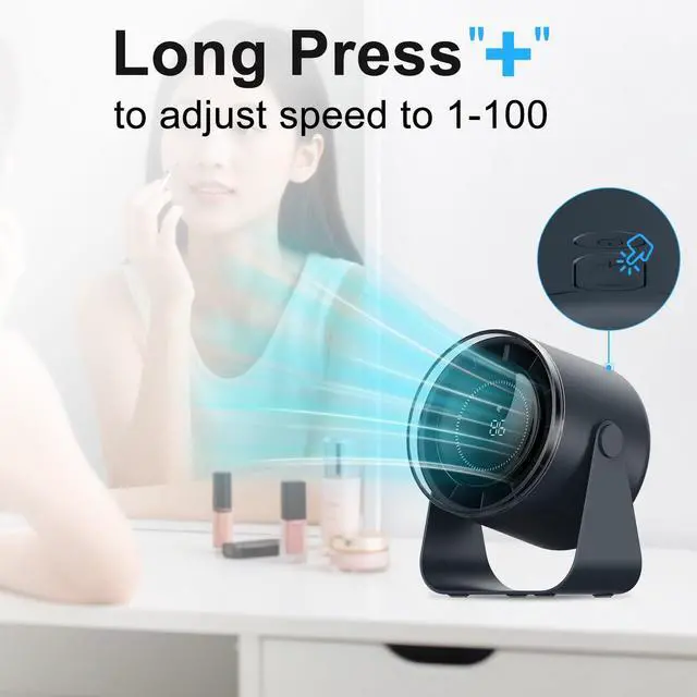 Small Desk Fan, 28dB Ultra-Quiet Desktop Air Circulator with 115° Adjustable Tilt, 100 Speeds, Rechargeable Battery, USB-Powered, Portable for Bedroom, Office, Kitchen, Travel -Bluish Black
