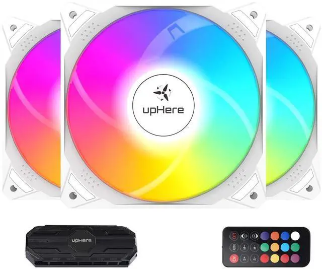 upHere NT1206 RGB case fan offers high airflow, speed adjustability, and stunning ARGB lighting for efficient cooling and a unique visual effect. It's a low-noise, long-lasting, and convenient fan with a 3-pack value, perfect for PC enthusiasts.