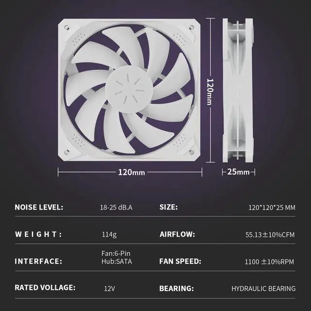 With a massive airflow of up to 55.5 CFM,our 120mm fan provides exceptional cooling performance to keep your computer components at a safe temperature,ensuring optimal system performance and longevity.