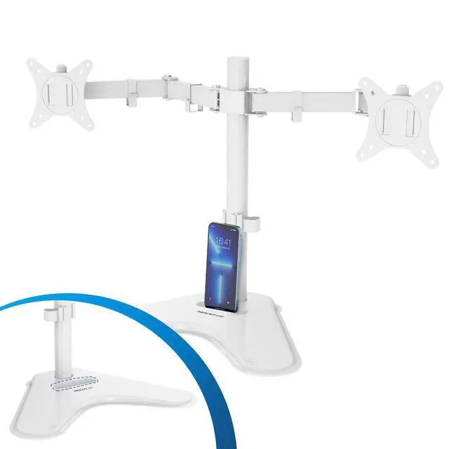 Built-In Phone Slot and Quality Guarantee: Keep your smartphone within easy reach thanks to a handy built-in slot in the base of this freestanding dual monitor stand.