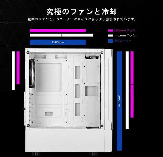 The TALOS E3 MESH WH is a premium compact mid-tower case with an elegant snowy white outlook. Featuring 3 built-in 120mm ARGB fans, tempered glasses on the side panel, and a PSU cover design for a minimalist design