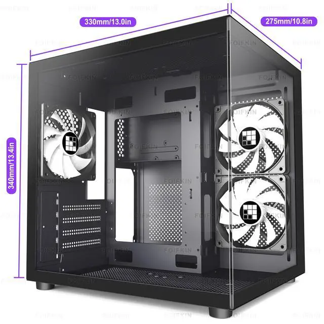 FOIFKIN F100 PC Case - Pre-Installed 3 ARGB Fan, Micro-ATX Gaming PC Case, 270° Panoramic Glass with USB 3.0, FOIFKIN, Black