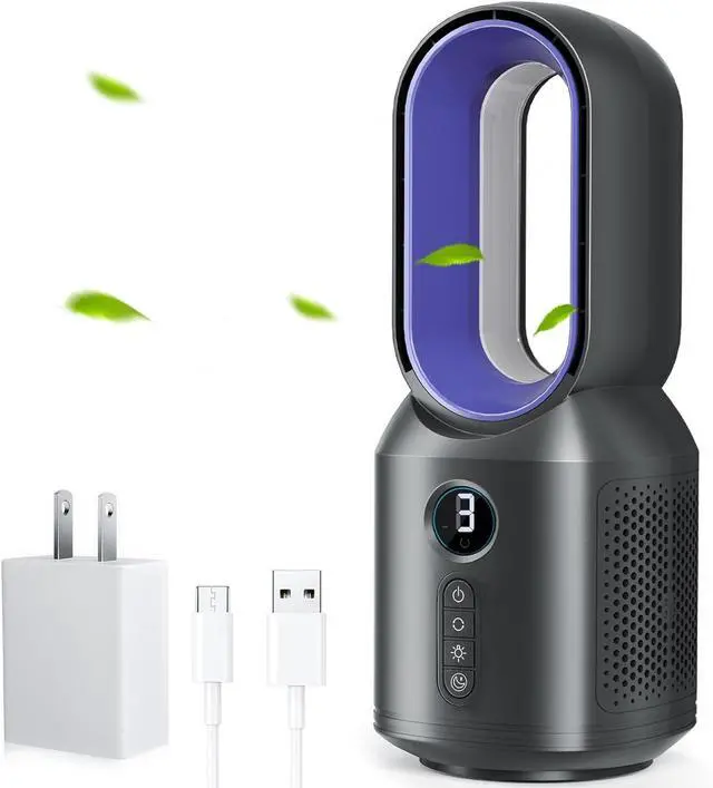 USB Desk Bladeless Fan, Small Table Fan, Rechargeable Portable Fan