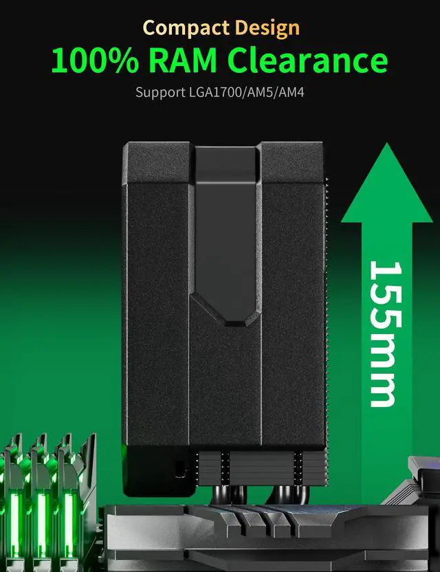 up1 Series CPU air cooler features 100% RAM compatibility,155mm height for compatibility with most cases.