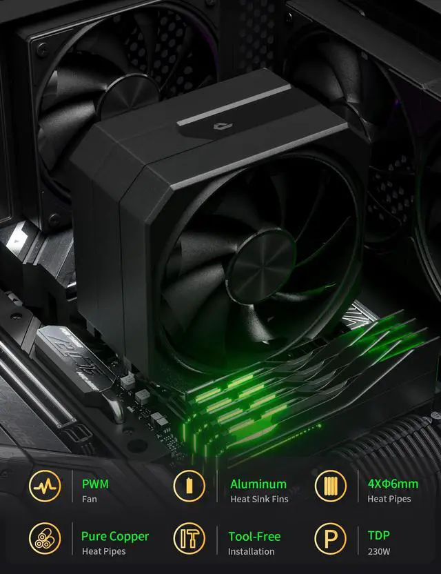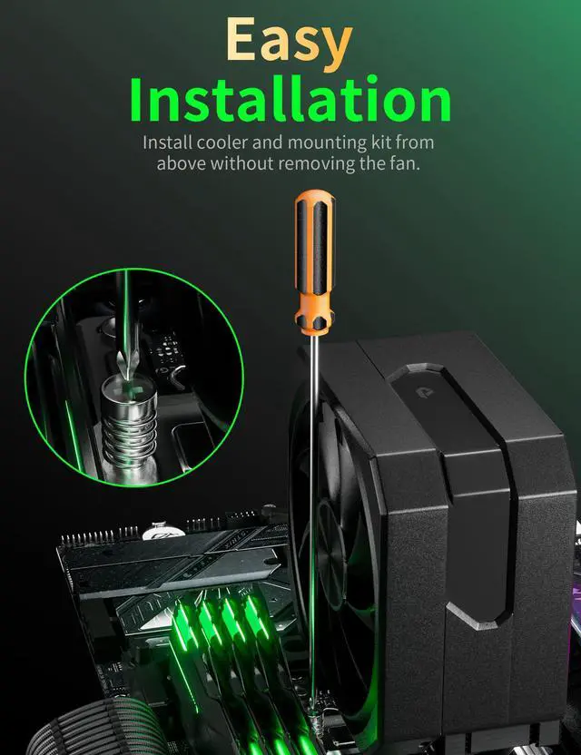 up1 series CPU air cooler features non-disassembly fan installation for hassle-free setup, allowing you to install the cooler without removing your motherboard and RAM.