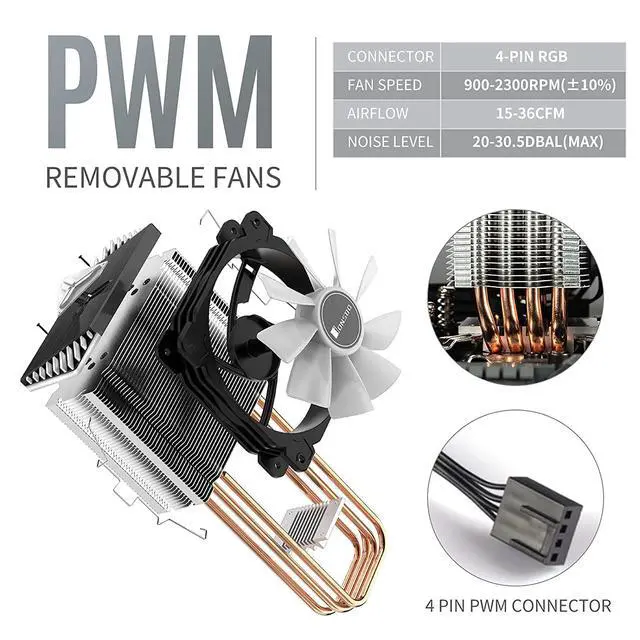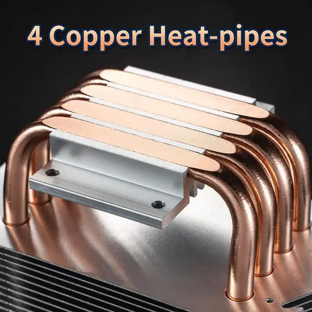 4 Copper Heat-pipesThe 4 6mm Pure copper and vacuum heat-pipes of this CPU Cooler for can directly connect to the CPU. Thus, the heat can be transferred to the fins quickly without any obstacles. And it adopts 41 inserted fins, the heat pipes and fins can be closely connected, the heat conduction system is easy to work.