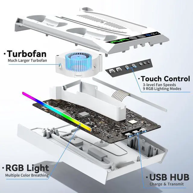 [3 Adjustable Fan Speeds] The enlarged turbo fan within the playstation 5 cooling station has three adjustable speed levels. A simple button touch enables easy speed changes. Moreover, it can recall your preferred fan mode after a restart, making it an excellent ps5 slim cooling station.
