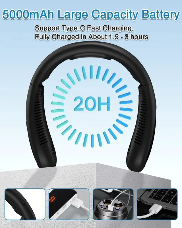 Foldable & Hands-free designErgonomic hands-free design can be easily worn, suitable for work, study, kitchen, fitness, driving, etc. Additional folding design, the folded size is only 21 * 13 * 6.4cm, which can be easily placed in a bag. You can easily carry it outdoors, travel, camping, concerts, bringing you coolness anytime, anywhere.